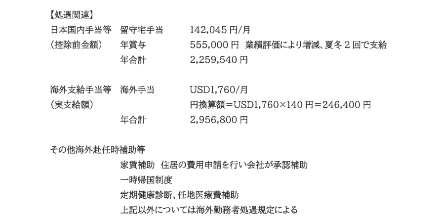 海外支給手当 USD 1,760 年だと約3,475,000円(上記と同じ計算)