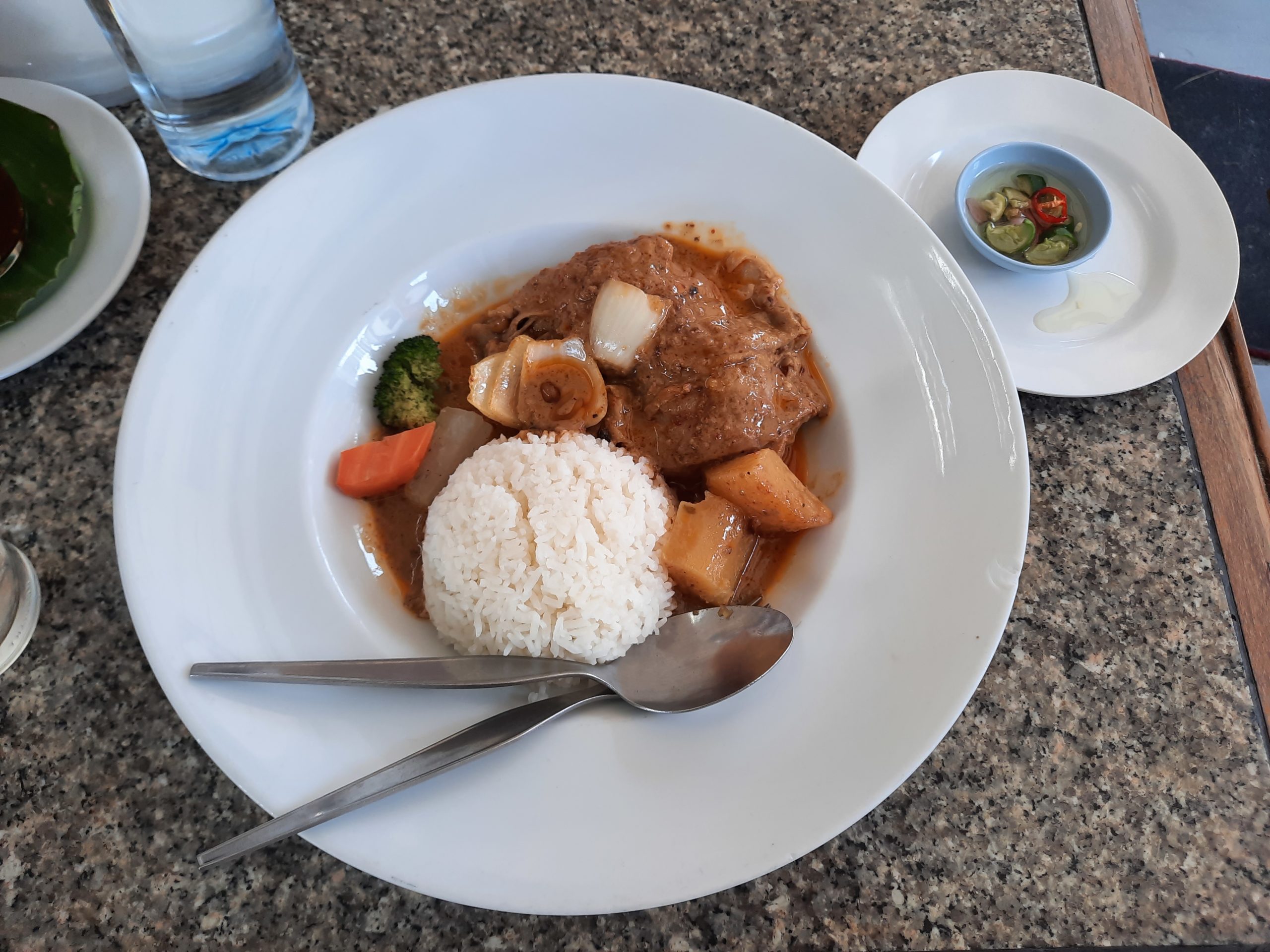 始めてのマッサマンカレーでしたが、非常に満足と味でした。また、量も多すぎず、少なすぎずだったのでちょうど良かったです。