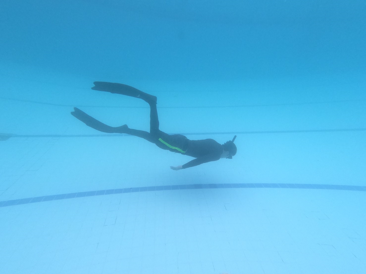 次に練習をしたのは、ダイナミックアプネアといって、一呼吸で水中を水平移動する練習です。