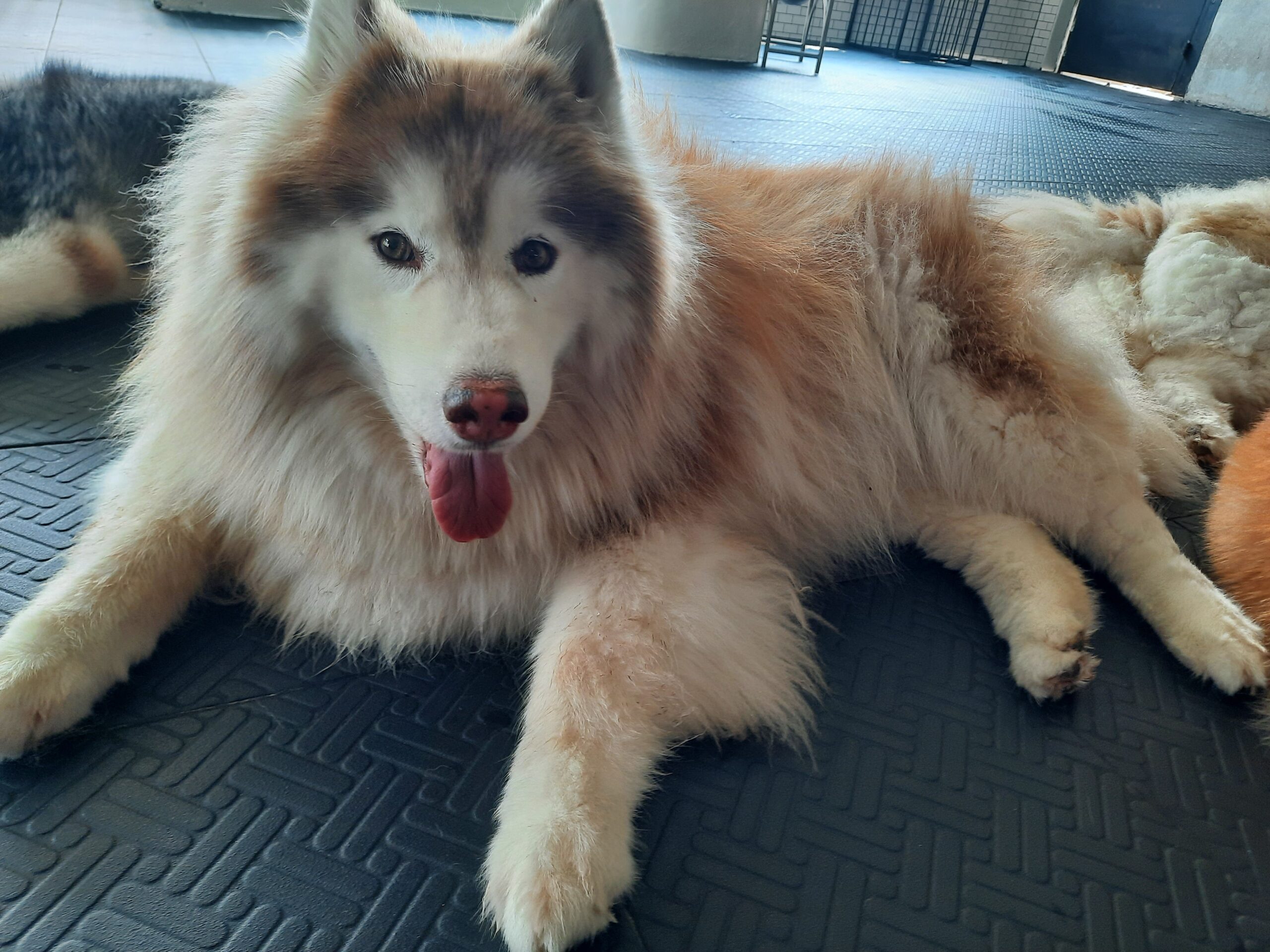 大きな茶白のハスキーの写真ばかり撮っていたら、全くかまっていなかった黒白のハスキーが不貞腐れたのか、私に飽きたのか寝始めてしまいました。。。でも、こんな光景を見るのも癒しです(笑)