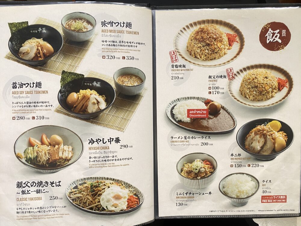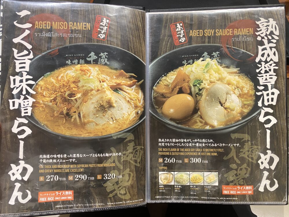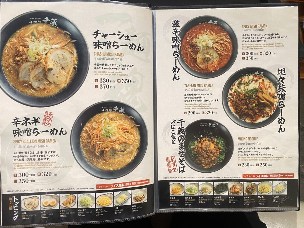 てっきり日本で展開しているお店のバンコク店かと思ったのですが、現在 「味噌麺 千蔵」として日本国内で営業している店舗はないそうです。