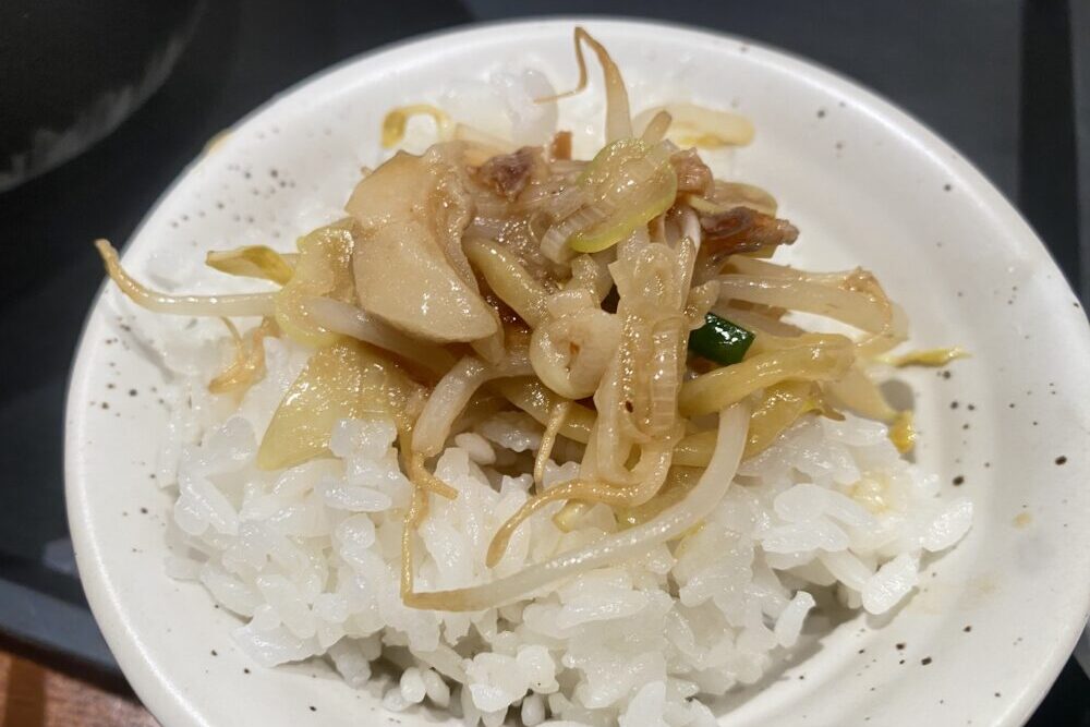 味噌スープがおかずでもご飯が進むわけなのですが、せっかくなので具材を乗せていただきました!