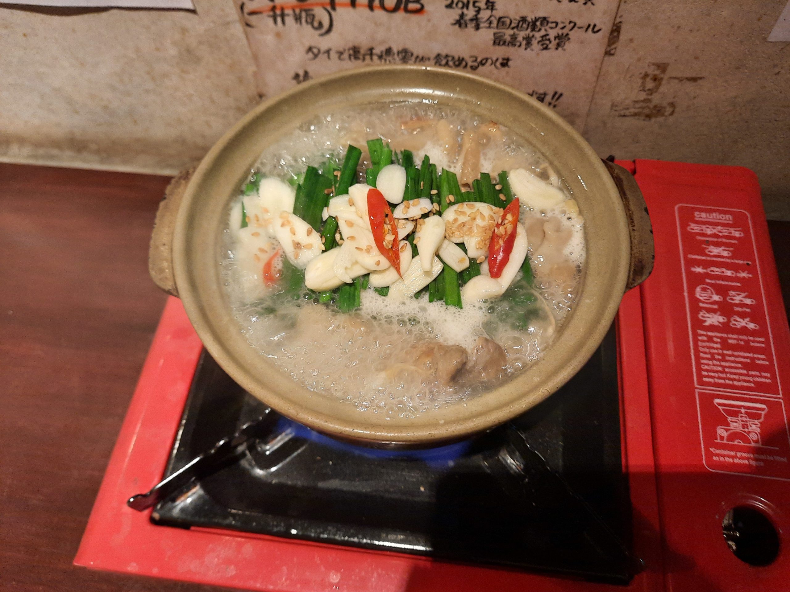そして、ついに念願のもつ鍋です!!タイでは初めて「もつ鍋」を食べるので、食べる前からテンションがかなり高めです。