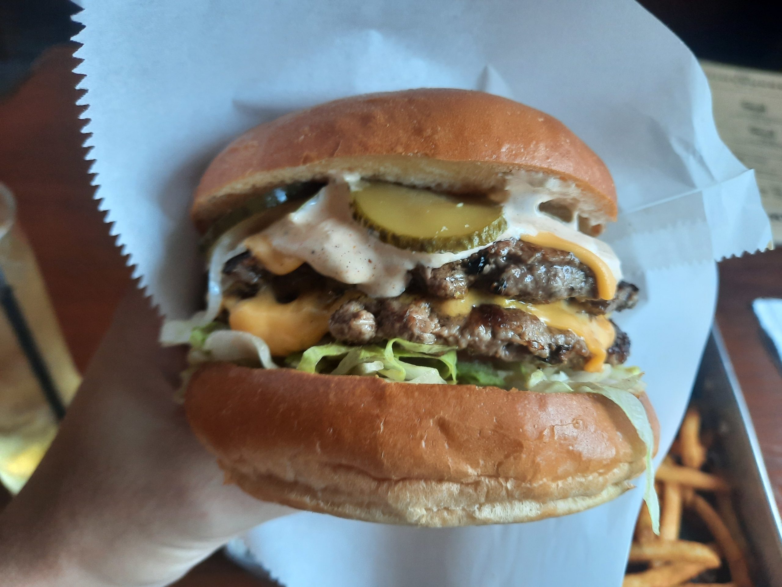 近くで見ると、なかなかボリュームがあるハンバーガーです。