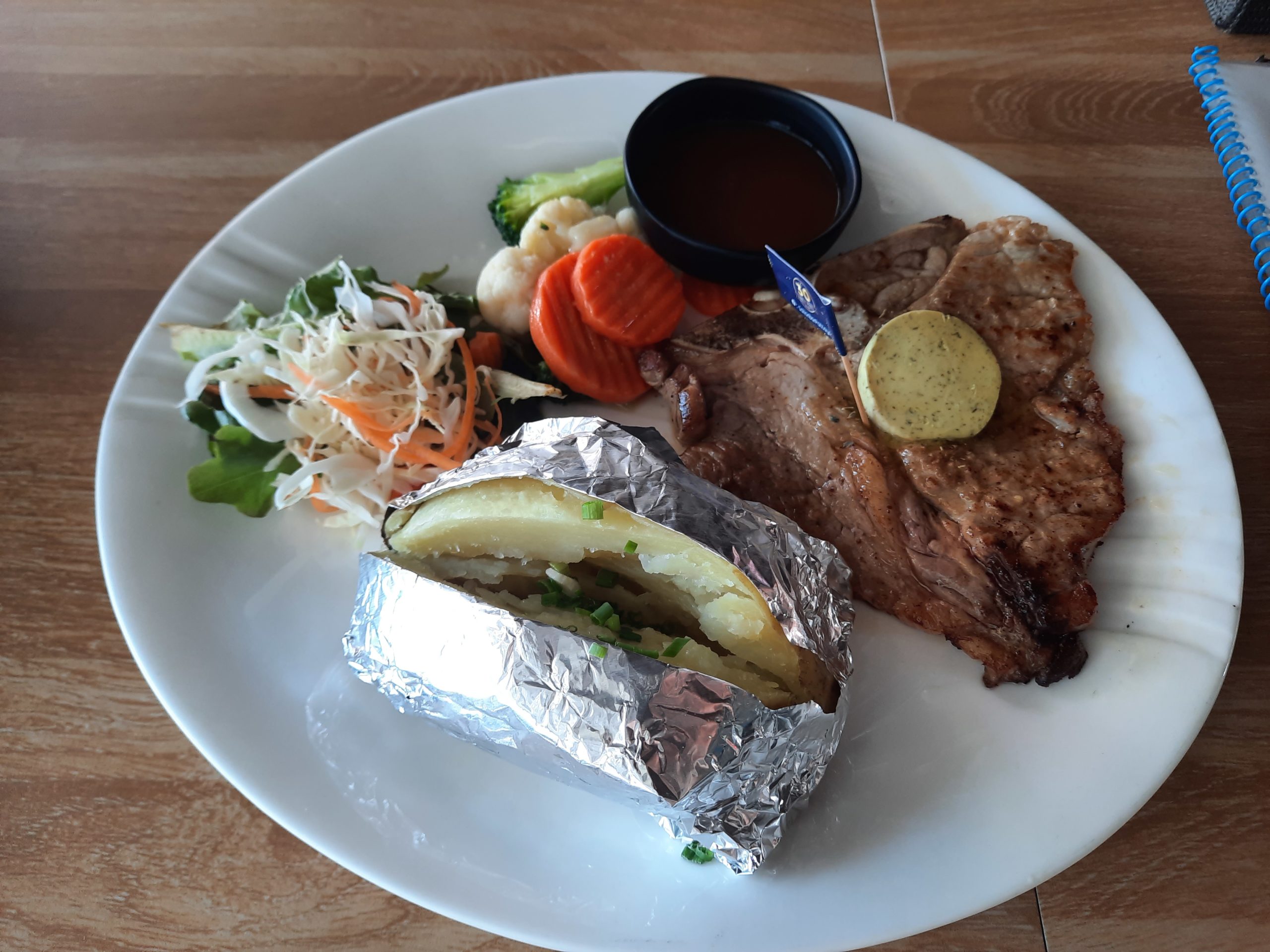 今回注文したのは160バーツのT-BONE STEAKです。お肉は写真だとわかりづらいかもしれませんが、なかなか大きいので、食べごたえはあると思います。