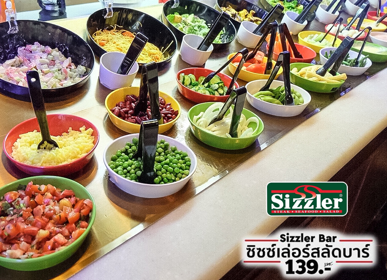 そこで、サラダバーだけでも、「Sizzler」(タイでは「シズラー」と呼ぶ)のサラダバーや通常メニューを紹介したいと思います。バンコクにも30店舗近くあり、バンコク郊外にもショッピングセンターなどのレストランでよく見かけます。
