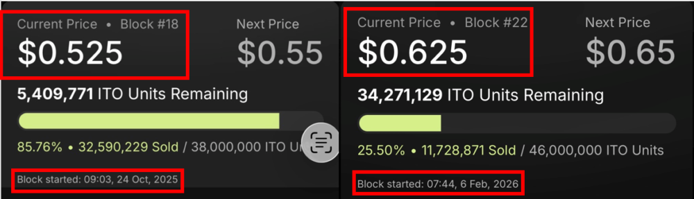 私が開始した2025年10月23日はITO価格は0.5 USD でした。