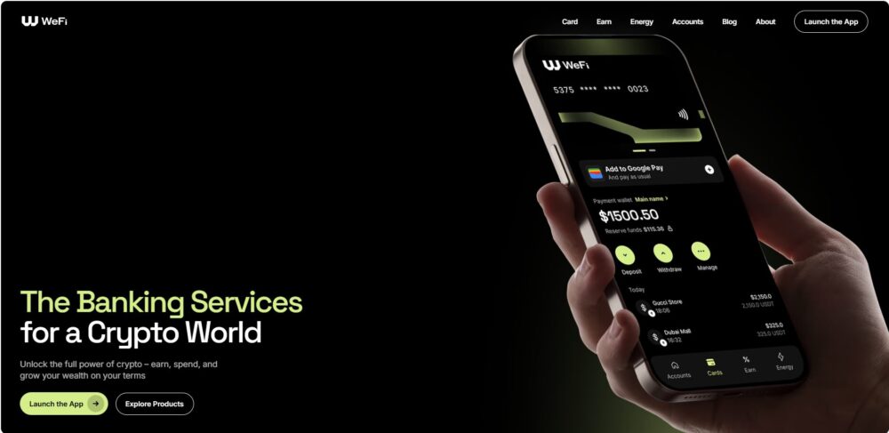WeFi(WFI)は、分散型のオンチェーン銀行プラットフォーム「deobank(ディオバンク)」という、暗号資産のユーザー主導の管理と、カードや決済、貯蓄といった従来の金融サービスを融合させることを目的に作られたプロジェクトです。